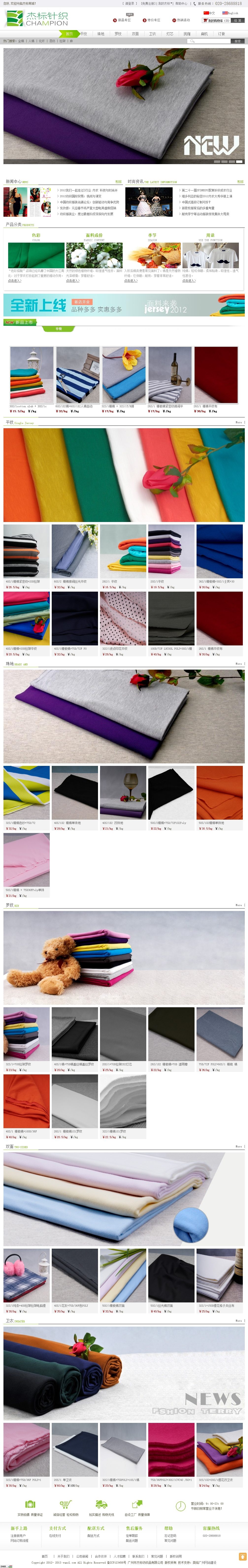 广州市杰标纺织品有限公司成立于2011年初,公司现主要经营平纹,罗纹,珠地,卫衣,双面等各类针织面料产品,自创立以来一直努力不懈地致力于服装面料的研究与开发,现已形成了从生产到销售的经贸联合体,为服装产业提供优质的产品和快捷的服务,赢得客户的信赖。